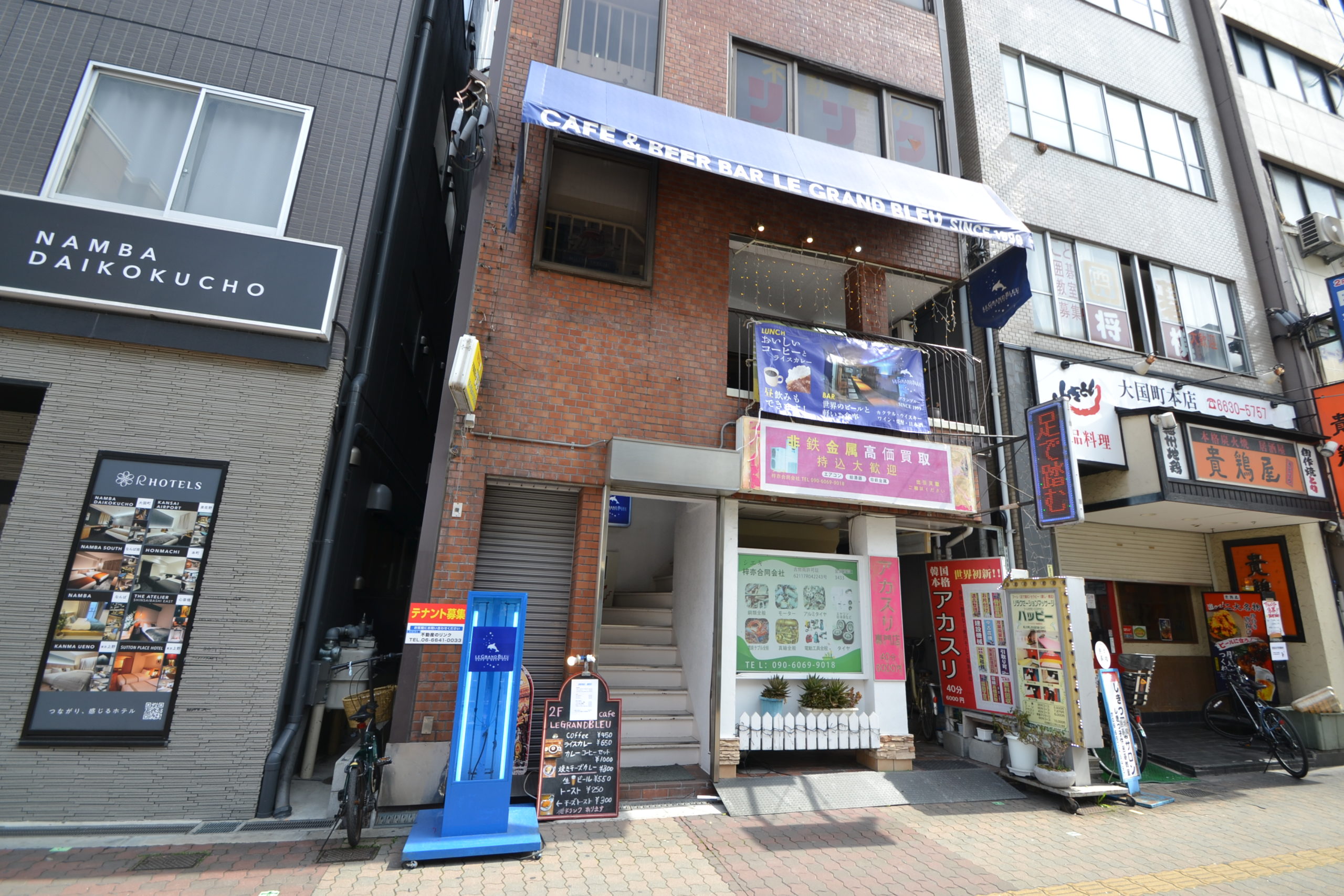 カフェ&バーLe Gland Bleu(グラン・ブルー)SINCE 1999☎090-7553-3977〒556-0012大阪府大阪市浪速区敷津東2-5-17-2FLUNCH 11:30~17:00BAR 17:00~23:00定休/日曜